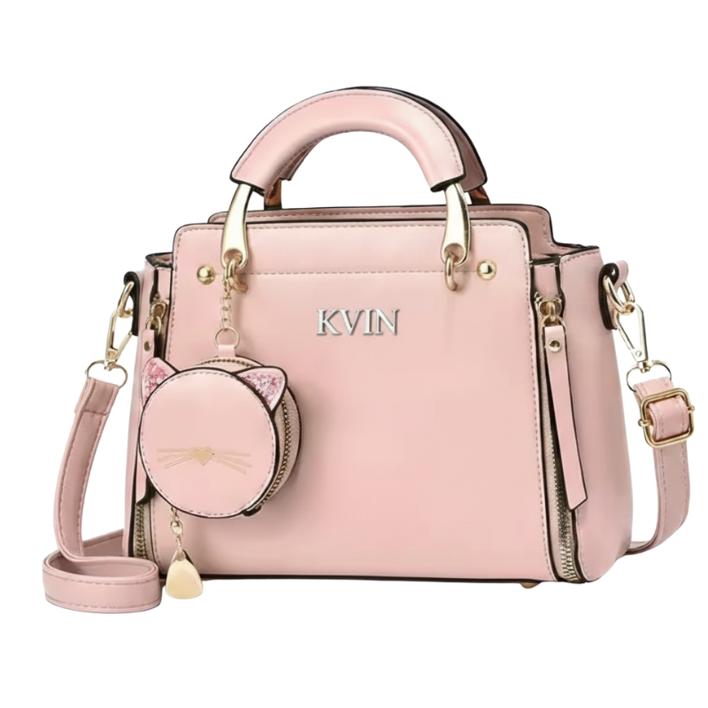 EIRA Rosy Pink Pebbled Leather-Style Tote with Silver Leaf & Pearl Charm