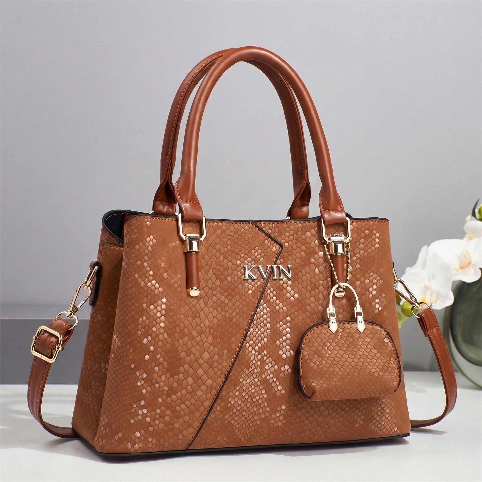Wear it your way. The sturdy dual top handles offer a polished hand-carry look, while the detachable, adjustable shoulder strap allows for comfortable crossbody wear on busier days. Plus, the signature KVIN mini-charm attached to the handle serves as a stylish and practical spot for your keys, coins, or earbuds.