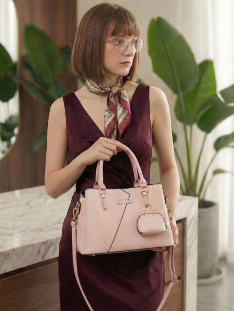Aria Soft Blush Pink Snakeskin Embossed Tote